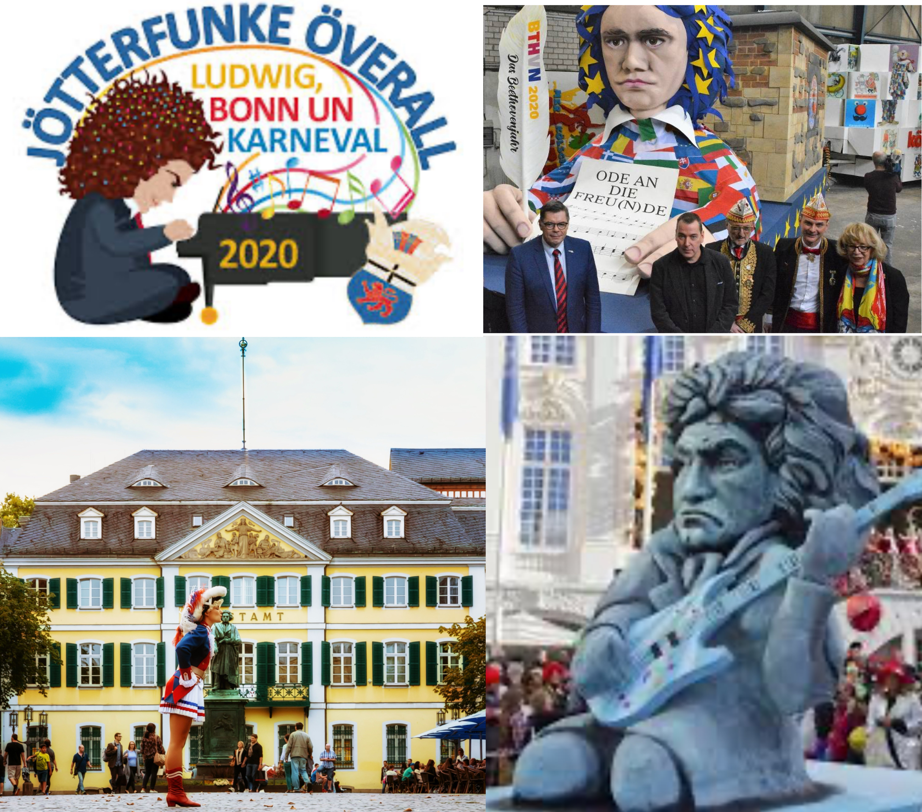 2017 tönte unter dem Motto „Bonn met Hätz“ aus dem Prinzenorden sogar das Ta-ta-ta-da-da der 5. Sinfonie. Zum 250. Geburtstag des Komponisten stellte der Festausschuss Bonner Karneval 2020 gleich die ganze Session unter das Motto „Jötterfunke överall – Ludwig, Bonn un Karneval“. Auf dem Prinzenorden zum Jubiläum blinkten neun Götterfunken für die neun Sinfonien und im Rosenmontagszug 2020 gab es einen eigenen „Zoch im Zoch“, der dem größten Sohn der Stadt gewidmet ist. Auch im Karneval bleibt „unser Ludwig“ der größte Sohn der Stadt. Der gleiche Beethoven-Motto-Wagen fuhr bei den Zügen in Aachen, Bonn, Köln und Düsseldorf mit. So etwas hatte es in der rheinischen Karnevalsgeschichte noch nie gegeben.