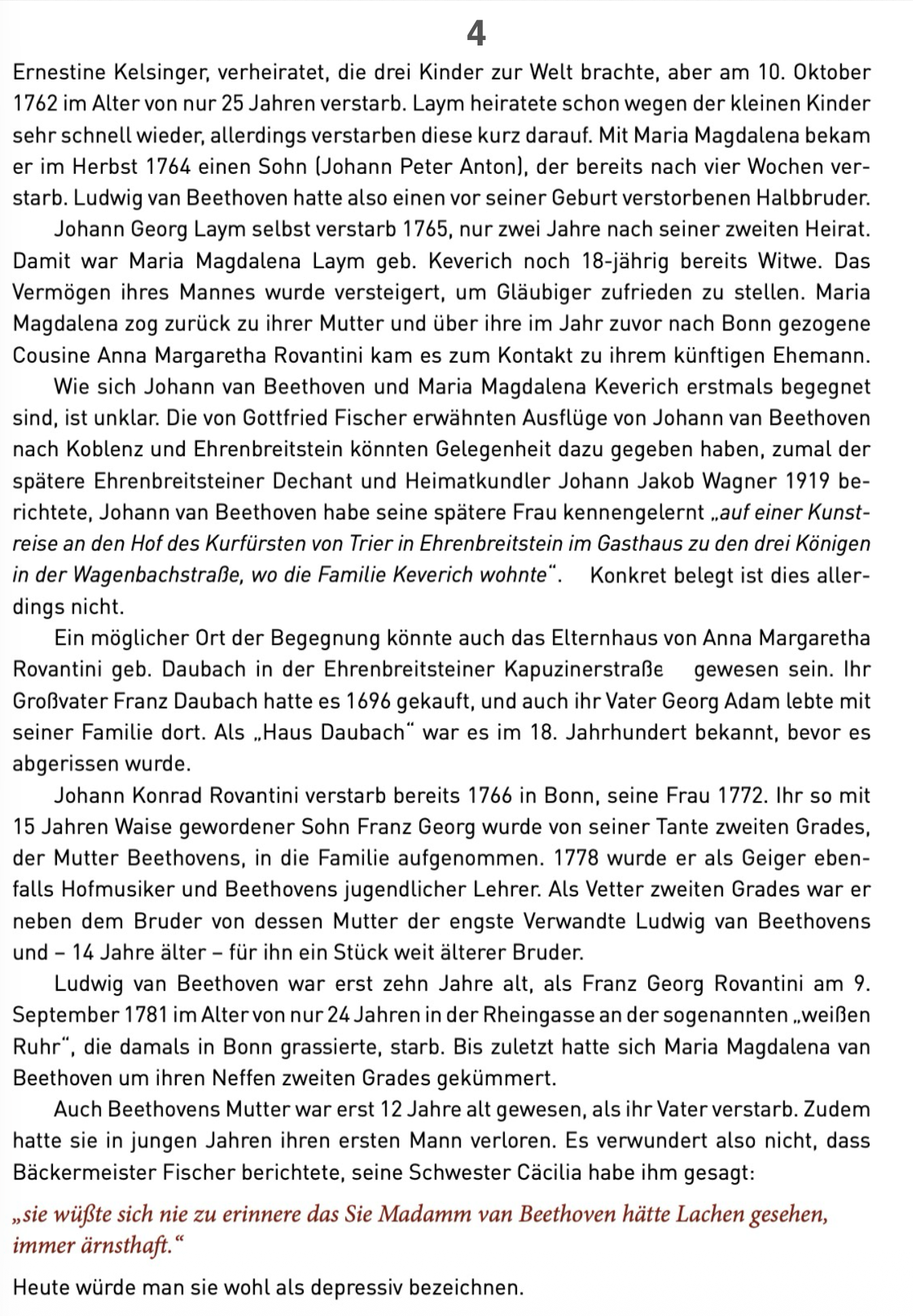 Mitglieder des Vereins „Förderer Mutter-Beethoven-Haus „werden uns durch das Geburtshaus der Mutter Beethovens, Maria Magdalene Keverich, und Ehrenbreistein führen. Bis 1786 war Ehrenbreitstein Residenzstadt des Kurfürstentums Trier. Im November 1786 wurde Koblenz durch den Bezug des neuen Schlosses Residenzstadt. Somit hat Ehrenbreitstein, wie auch Bonn, seine eigene kurfürstliche Geschichte.