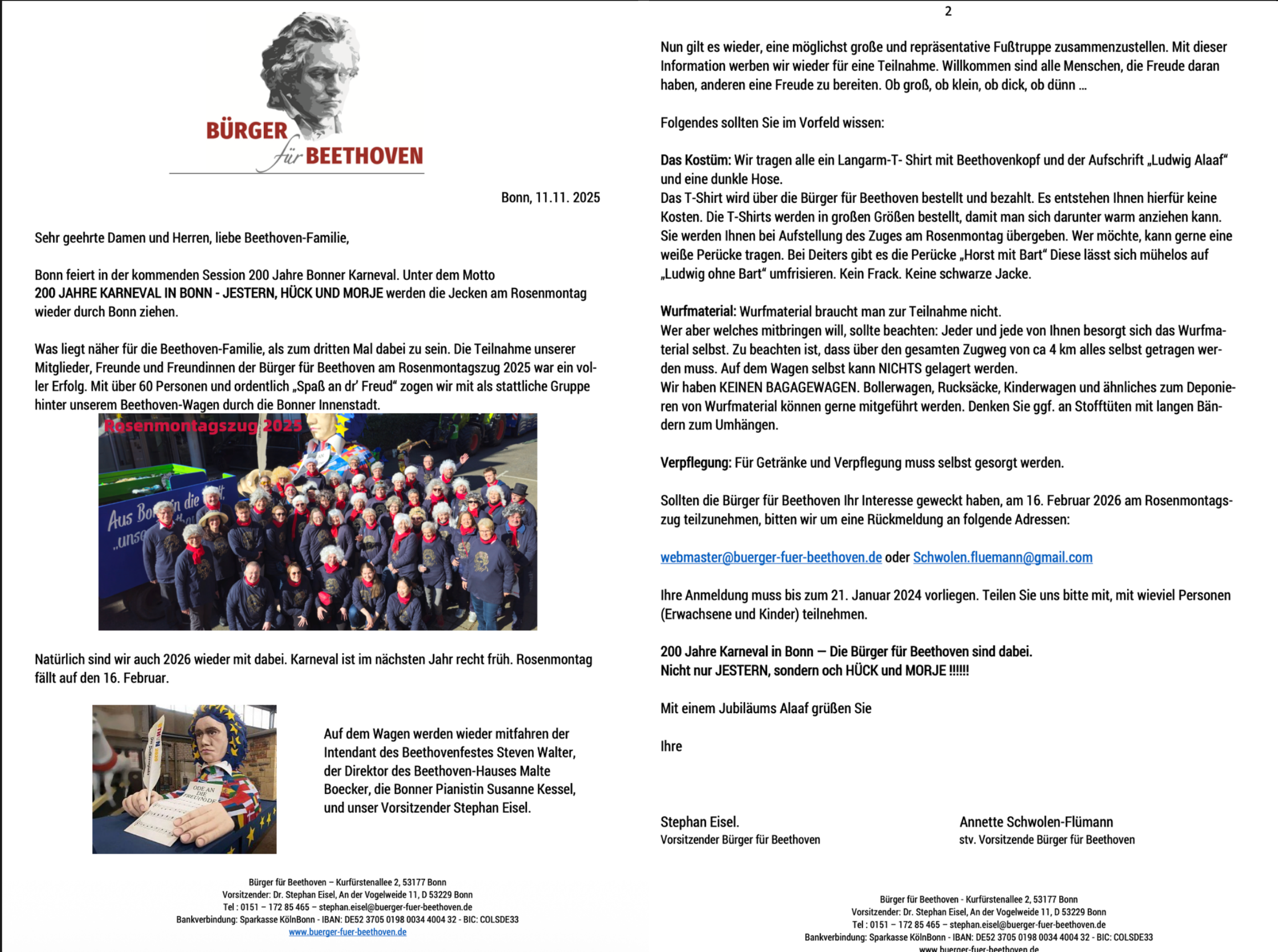Die Bürger für Beethoven beteiligen sich wieder mit einem eigenen Motto-Wagen und einer Fußgruppe am Bonner Rosenmontagszug. Anmelden können Sie sich dafür an webmaster@buerger-fuer-beethoven.de