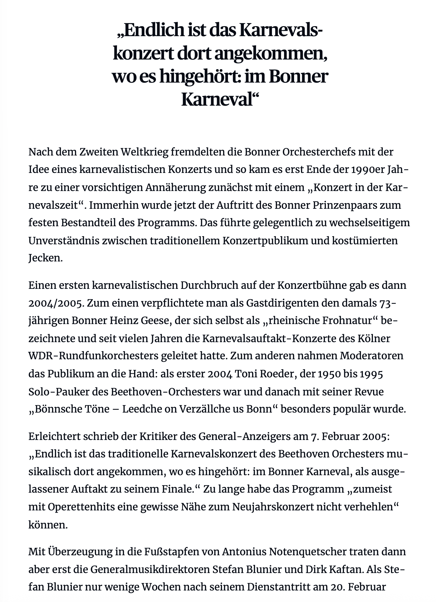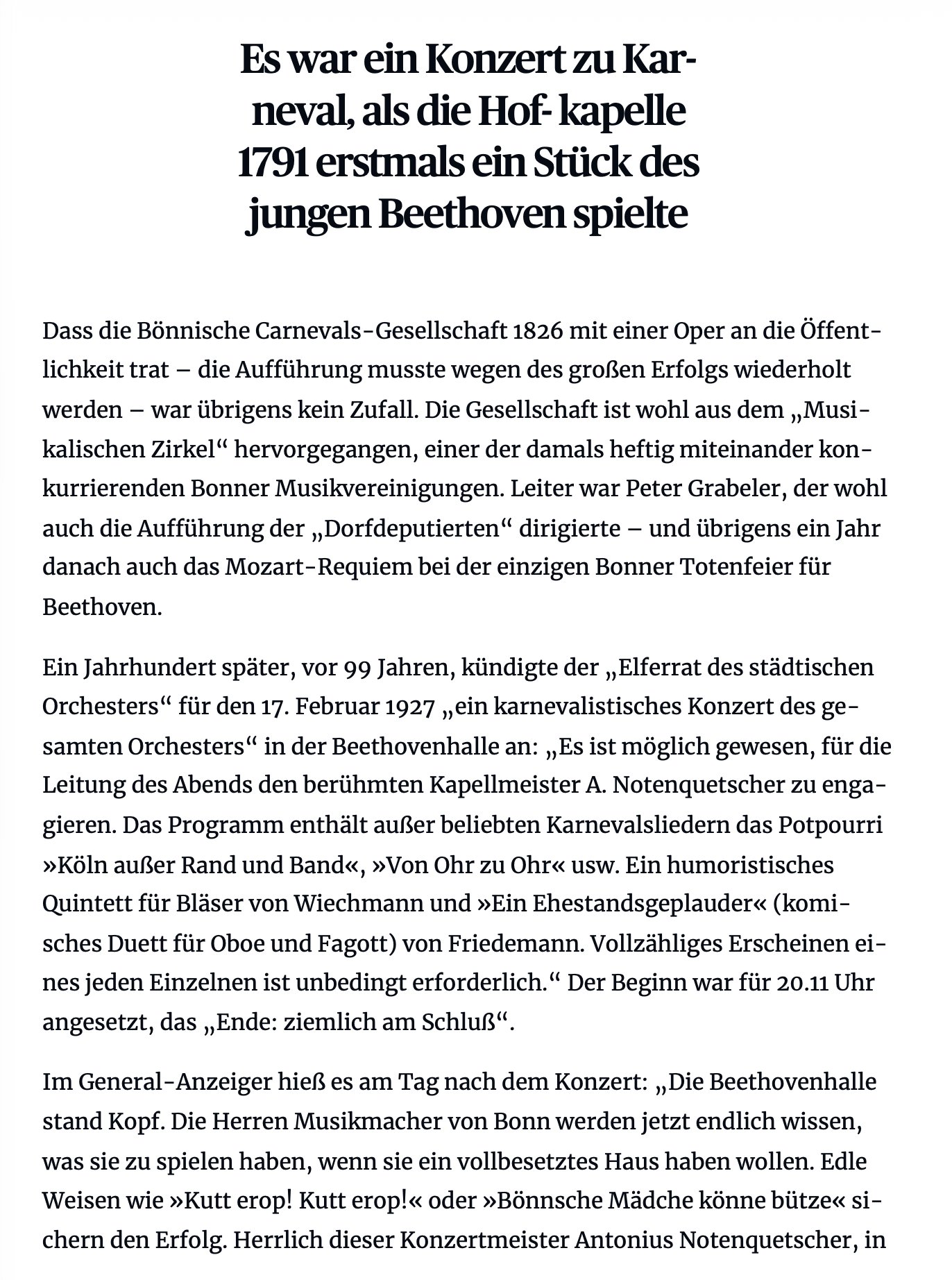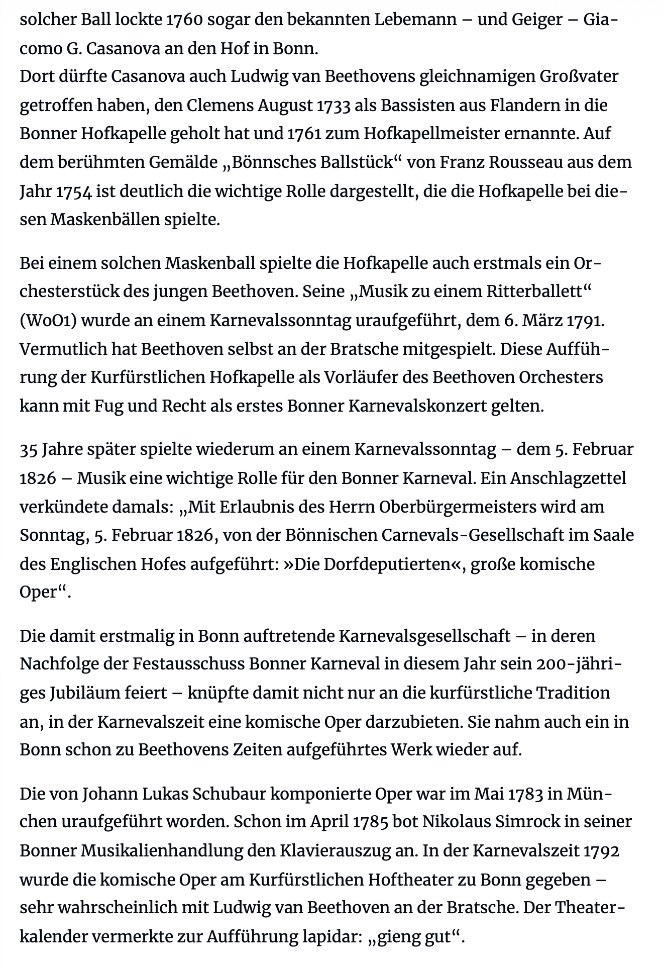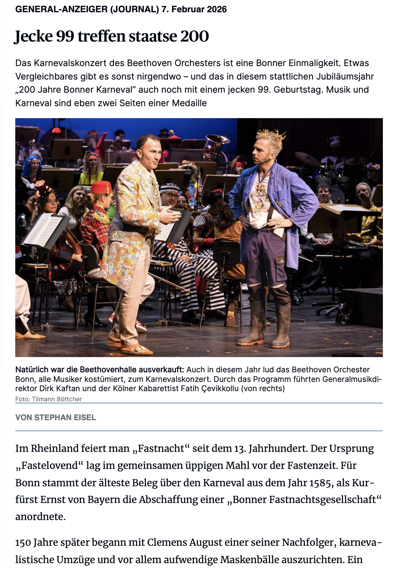 Lesen Sie zur Geschichte des Karnevals und des Karnevalskonzertes, in der auch Ludwig van Beethoven immer wieder auftaucht, den Beitrag von Stephan Eisel im General-Anzeiger vom 7. Februar 2026, den Sie hier ausdrucken können.